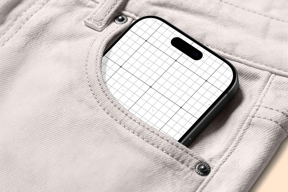 这是一张展示iPhone 17 Pro Max手机揣在裤兜里的高质量样机图片。图片逼真地模拟了这款高端手机在日常携带时的外观效果,非常适合用于产品展示、广告设计、电商详情页或UI/UX设计演示。该样机资源能帮助设计师和营销人员快速、专业地呈现产品在实际使用场景中的视觉效果,提升项目展示的真实感和吸引力。